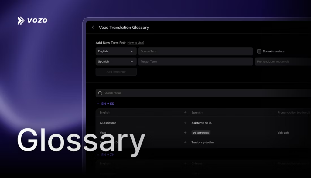 Vozo offers dedicated controls to ensure your translation is accurate in both language and tone:
