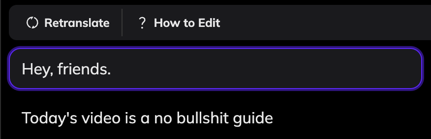 If any translation errors occur due to misrecognized source text, simply click on the original text segment, make your edits, and then click the Retranslate button to regenerate the translation for that segment. You can also manually adjust the translated text as needed.