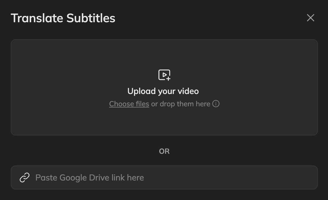 - Upload or Paste Link: Start your project by uploading your video or by pasting a public link (e.g., YouTube or TikTok). Vozo supports transcription in over 125 languages.