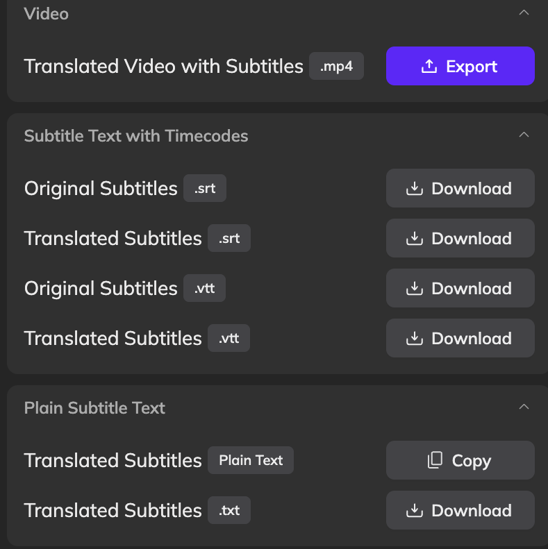 - Export and Deploy: Download the final localized content. Vozo supports industry-standard formats, specifically SRT and VTT, for seamless integration into any hosting or editing platform. You can also export a video with subtitles embedded (MP4).