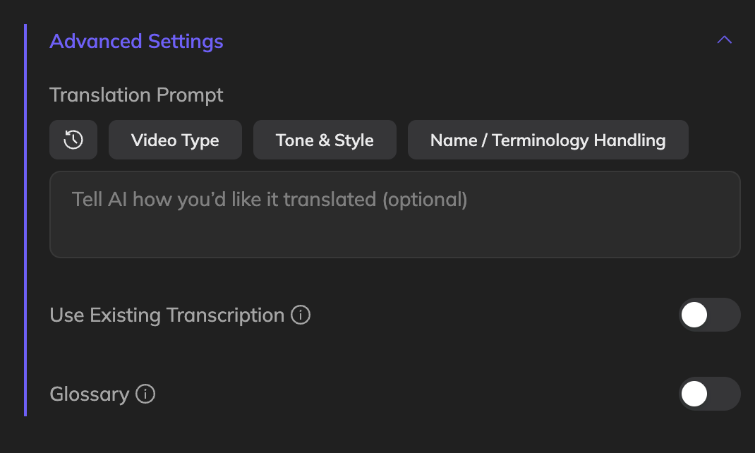 | Custom Prompts | Guide tone, style, and formality. | Localization: Match your brand voice and culture. |