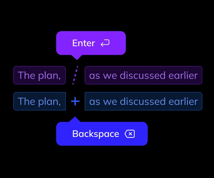 Hit [Enter] to split a sentence, [Backspace] to merge. It's exactly like editing a Word doc.