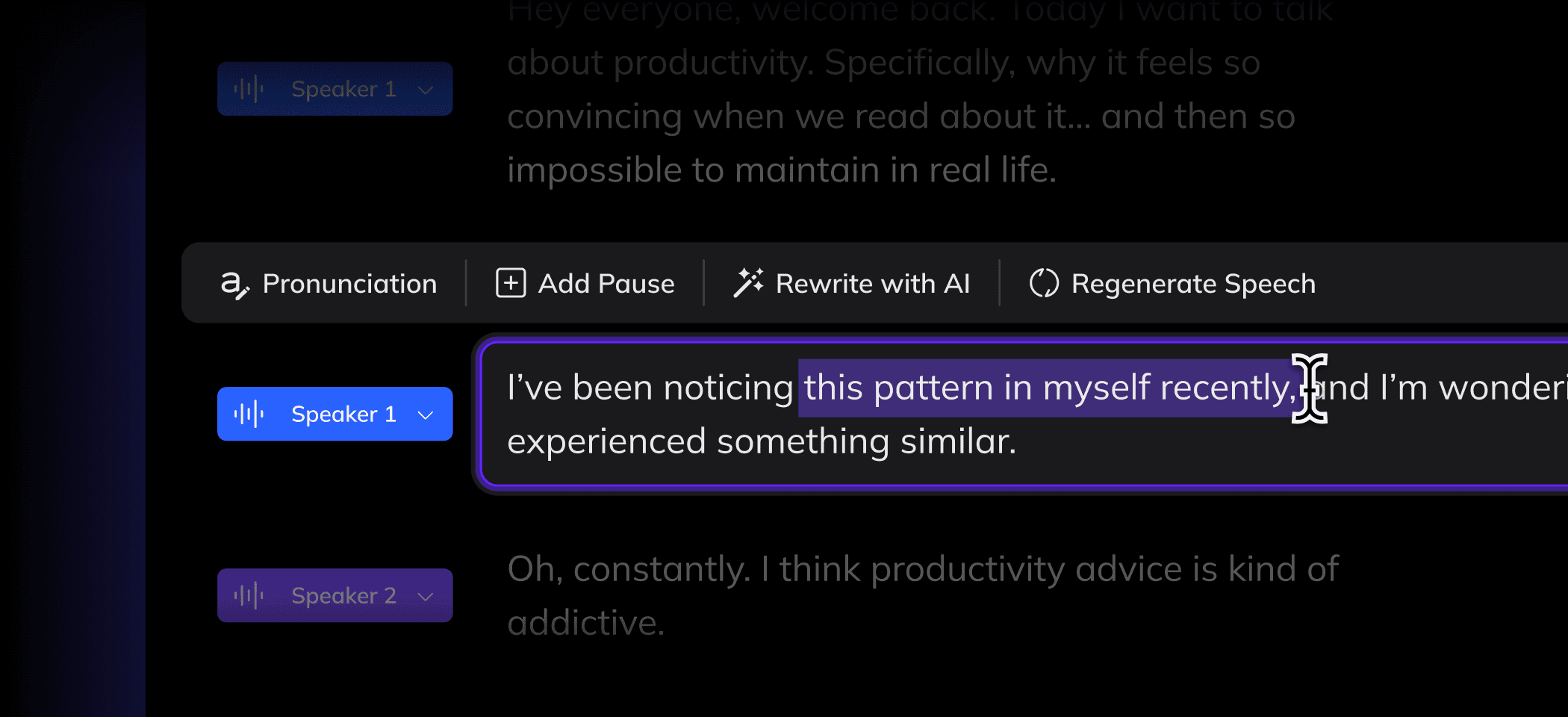 Edit speech the same way you edit text.